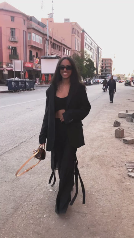 Elevate your style with our Gabardine Lace Tailored Pants. Carefully crafted to showcase the mesmerizing beauty of your every move, they're the ultimate choice for those who seek elegance and versatility in their wardrobe. The laces are made to follow your moves. Make every step captivating !