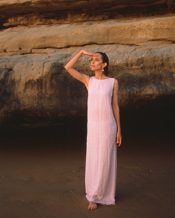 Matériau: Faite en lin certifié 100% naturel, la robe est teinté au Maroc en 6 coloris différents. Les bretelles sont en fils de soie.